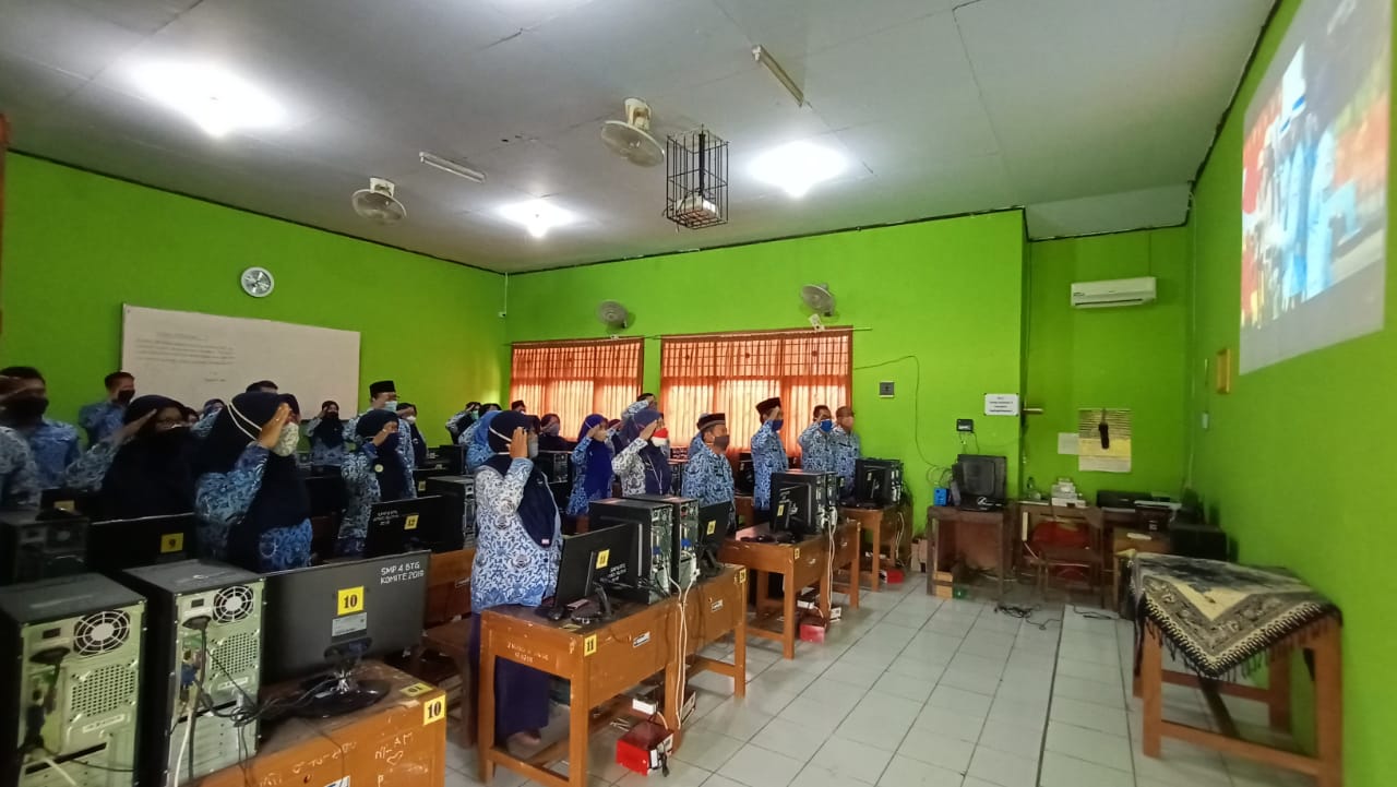 Berdasarkan Surat Edaran Sekretariat Daerah Kab. Batang Nomor 003.3/184/2021 Tanggal 12 Agustus 2021 Tentang Acara Virtual Peringatan HUT ke-76 Kemerdekaan RI Tahun 2021, maka pada hari ini Selasa 17 Agustus 2021 dengan dipimpin oleh kepala sekolah, seluruh guru dan tenaga kependidikan SMP Negeri 4 Batang melaksanakan kegiatan upacara peringatan HUT ke-76 kemerdekaan RI tahun 2021 di sekolah secara virtual di ruang laboratorium komputer 2.