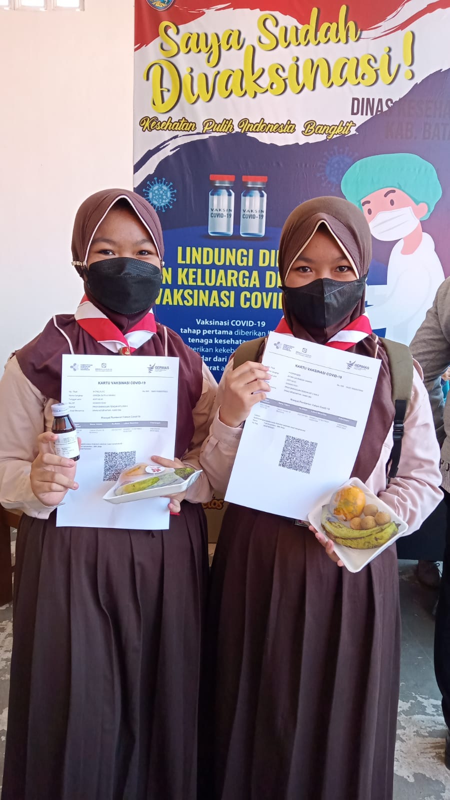 Sebanyak 50 siswa SMP Negeri 4 Batang mengikuti kegiatan Launching Vaksinasi Covid-19 terhadap remaja usia 12 tahun ke atas pada hari Sabtu, 4 September 2021 pukul 09.30-10.00 WIB di halaman Gedung PSC 119 Dinas Kesehatan Kab. Batang dengan didampingi oleh 2 orang guru yang menangani kesehatan sekolah, yaitu Ibu Rita Iskartikasari, S.Pd. dan Ibu Indah Trisanti, S.Pd. Kegiatan ini diselenggarakan oleh Dinas Kesehatan Kab. Batang berdasarkan surat Kepala dinkes Nomor 800/2439/2021 tanggal 31 Agustus 2021. Adapun persyaratannya yaitu siswa diminta membawa fotocopy KK, balpoint pribadi, wajib memakai makser dan mematuhi protokol kesehatan.